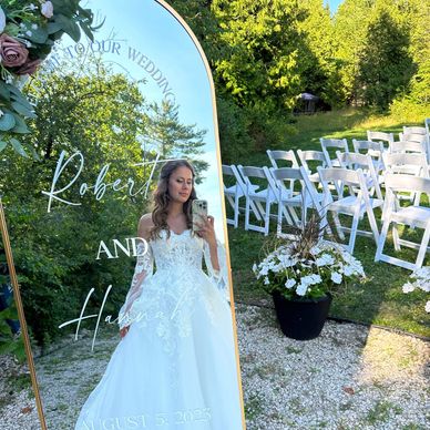 Create beautiful and functional pieces with our signage and seating charts. Available on acrylic, mirror, foam core, or as a decal to apply to your own mirror. Some rentals available.